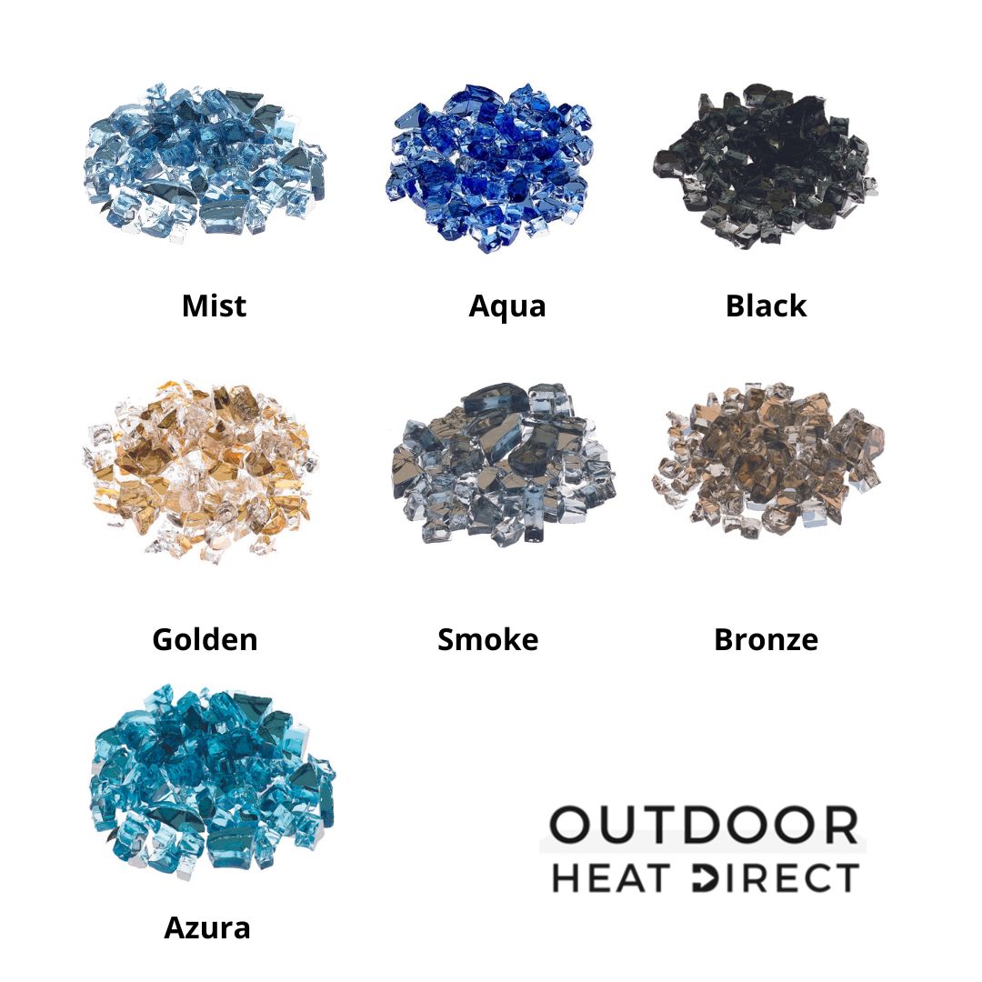 - Fire Glass:Β available in 7 colors - substitutesΒ standardΒ Lava Rock.