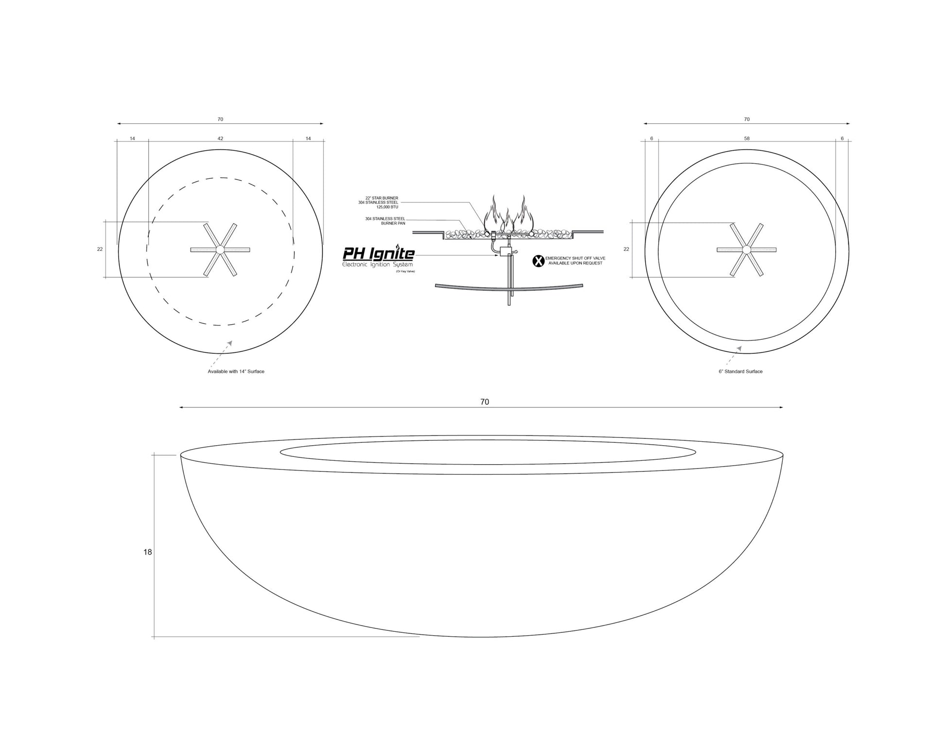 Β 70β³D / 18β³H,Β 15β³ βCrossβ Burner,Β 650 lbs.